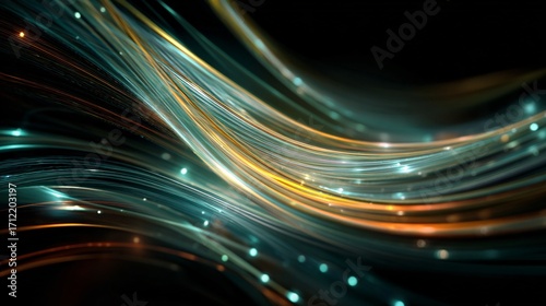 Abstract curved light lines twisting together with glowing intensity in dark futuristic space