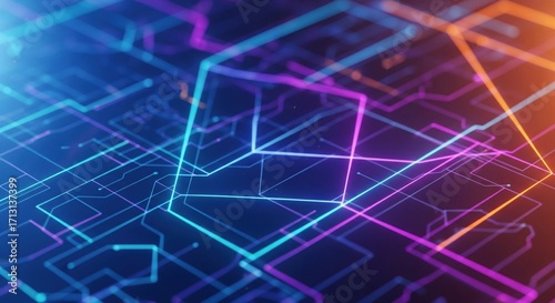 Leuchtende Leiterbahnen auf einem futuristischen Mikrochip