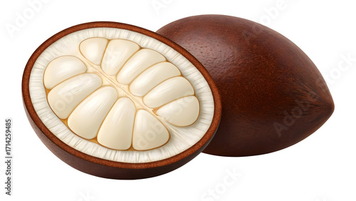Cut Open Cupuaçu Fruit with Seeds Isolated on Transparent Background