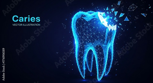 Grafik karies gigi modern yang bersinar untuk kampanye kesadaran dan pencegahan kesehatan gigi, cocok untuk materi edukasi dan promosi klinik