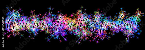 Kolorowe zimne ognie i fajerwerki układające się w kształt życzenia ALL THE BEST w języku wietnamsmkim.