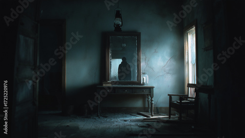 Zjawa widoczna w lustrze opuszczonego nawiedzonego domu – upiorne odbicie