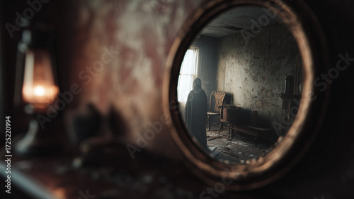 Zjawa widoczna w lustrze opuszczonego nawiedzonego domu – upiorne odbicie