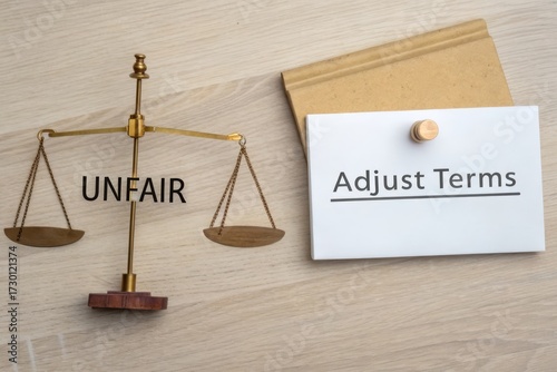 A balance scale diagram showing unfairness and adjustment of terms