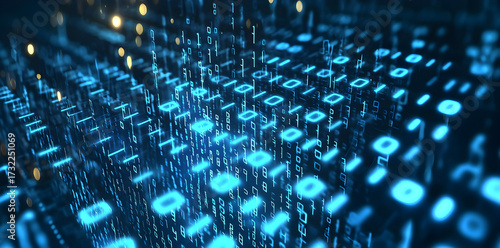 Binary code background with rows of zeros and ones symbolizing digital data, abstract technology design representing coding, programming, and information systems in modern computer science