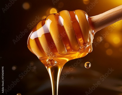 golden honey drips slowly creating a beautiful viscous texture