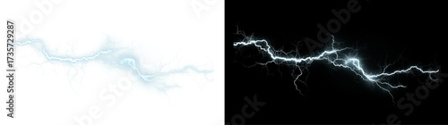 Realistic lightning strike PNG. Blue thunderstorm bolt effect.