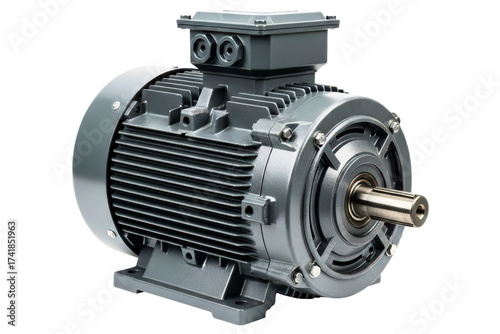 Industrial three-phase asynchronous electric motor for machinery on a transparent background