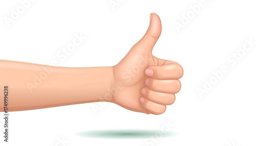 A cartoon illustration showing a light-skinned arm and hand giving a "thumbs up" gesture on a pure white background, with a green shadow