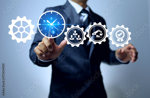time management concept with a businessman planning to manage project works by time cost and quality factor to get the best result of output and save resource in project management