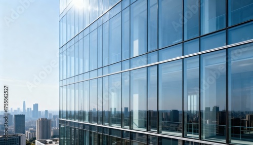 Frameless glass curtain wall in a medium shot highlighting seamless minimalist facade construction on a highrise enhancing contemporary cityscape aesthetics.