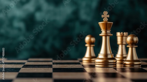 Chessboard with gold pawns defending a vault, strategic safe investment