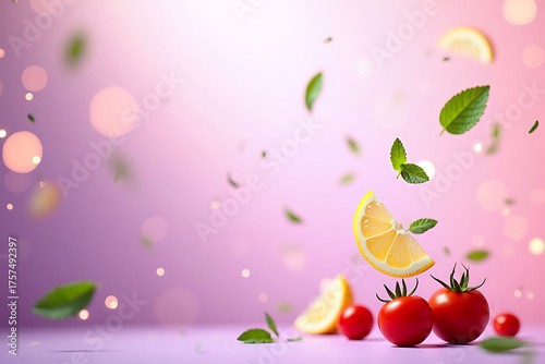 Refreshing Pink Backdrop with Lemon, Mint, and Cherries