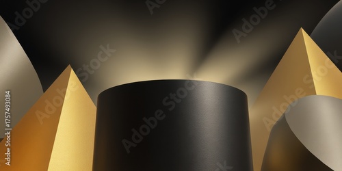 Luxury Dark Gradient with Gold Foil concept. Abstract shapes with a glowing center, evoking modern design.