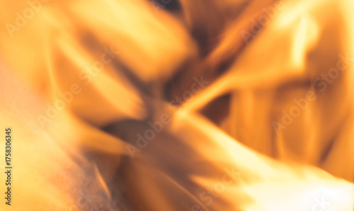 Abstract open flames background with soft motion blur in warm orange and yellow tones, burning fire texture with copy space. Heat, energy, house fire danger warning concepts, blazing flame backdrop