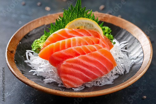 Lachs geschnitten, auf Eis gelegt mit Garnitur