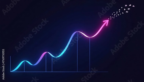 Smooth growth is a neon curve with an arrow shooting out, a trend breakout, and acceleration