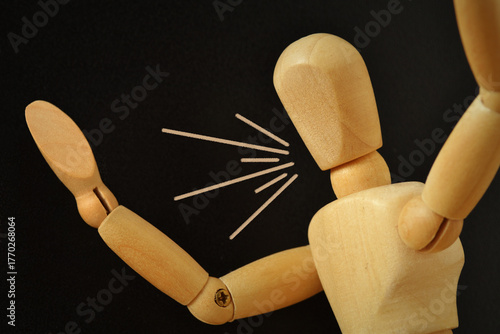 Angry wooden mannequin shouting - Concept of anger and frustration