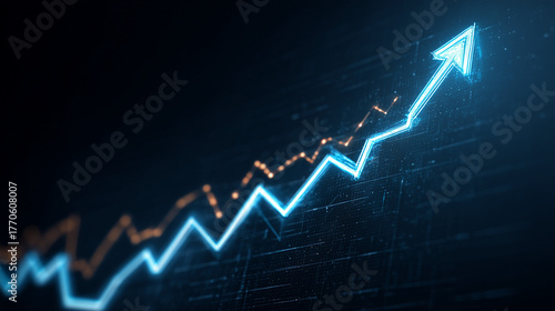 Gráfico com seta para cima simboliza crescimento financeiro, bons resultados, avanço empresarial, metas atingidas e evolução constante em cenário econômico positivo
