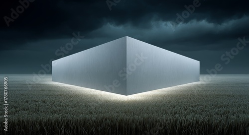 A genuine replica of a blank and weathered conceptual art canvas situated in a wheat field under a dramatic sky
