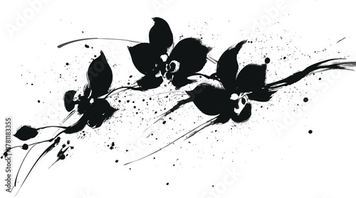 Abstract sumi-e orchid flower painting with expressive ink brush strokes on white background