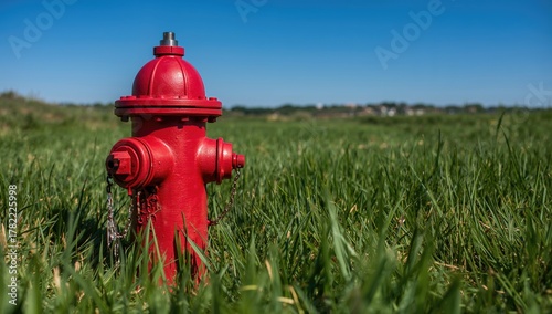 A red fire hydrant situated among green grass, urban infrastructure maintenance