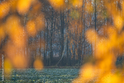 Jesienny las o poranku na śląsku, sezon jesienny.