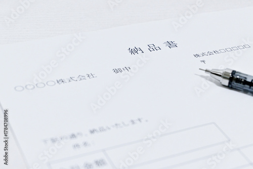 ボールペンと一緒に写された納品書のクローズアップ