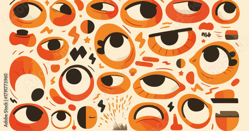 Zabawna kolekcja kreskówkowych oczu o różnorodnych wyrazach, tworząca dynamiczny i żywy wzór graficzny, idealny do kreatywnych projektów.
