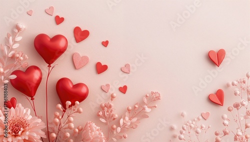 Invitation card template featuring vibrant scarlet hearts for romantic occasions, perfect for Valentine's Day