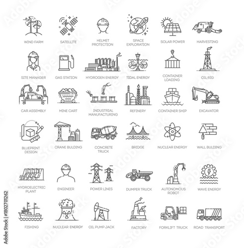 Industrial Activity icons Pack. Thin line Collection Smart Technology icons