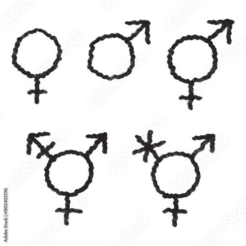 Set of hand drawn female, male, bigender and transgender gender identity sign Symbol used to represent sex and gender Single element for print, web, design, decor