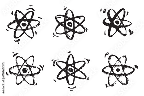 Set of hand drawn atom sign Molecule clipart in doodle style Symbol of science, education, nuclear energy, scientific research, molecular chemistry Single element for print, web, design