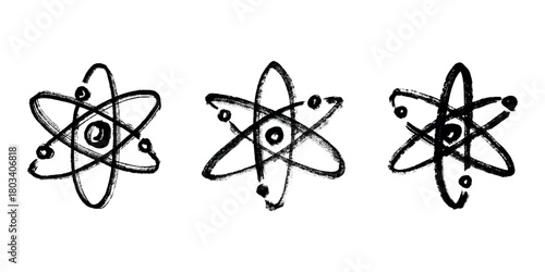 Set of hand drawn atom sign Molecule clipart in doodle style Symbol of science, education, nuclear energy, scientific research, molecular chemistry Single element for print, web, design