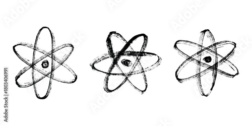 Set of hand drawn atom sign Molecule clipart in doodle style Symbol of science, education, nuclear energy, scientific research, molecular chemistry Single element for print, web, design