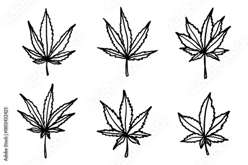 Set of hand drawn cannabis leaf Medicine marijuana Hemp leaves clipart in doodle style Single element for print, web, design, decor