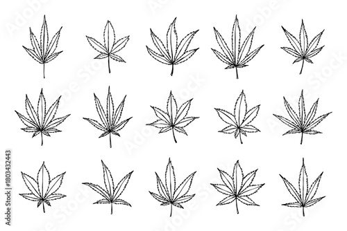 Set of hand drawn cannabis leaf Medicine marijuana Hemp leaves clipart in doodle style Single element for print, web, design, decor