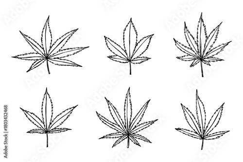 Set of hand drawn cannabis leaf Medicine marijuana Hemp leaves clipart in doodle style Single element for print, web, design, decor