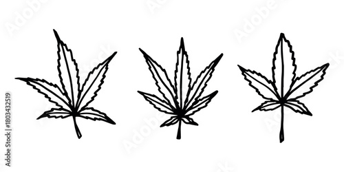 Set of hand drawn cannabis leaf Medicine marijuana Hemp leaves clipart in doodle style Single element for print, web, design, decor
