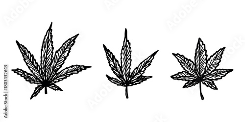 Set of hand drawn cannabis leaf Medicine marijuana Hemp leaves clipart in doodle style Single element for print, web, design, decor