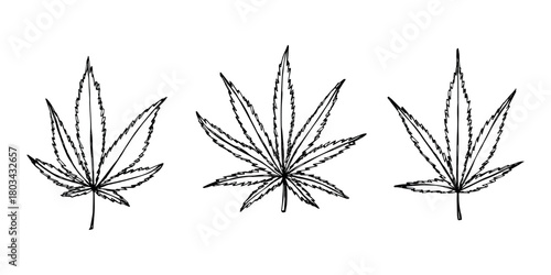 Set of hand drawn cannabis leaf Medicine marijuana Hemp leaves clipart in doodle style Single element for print, web, design, decor