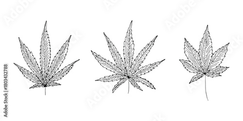 Set of hand drawn cannabis leaf Medicine marijuana Hemp leaves clipart in doodle style Single element for print, web, design, decor