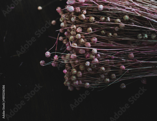 Ujęcie makro suszonych kwiatów na czarnym tle idealne do projektów kreatywnych