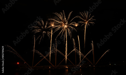 Feu d'artifice dans le port Hercule en Principauté de Monaco à l'occasion de la fête nationale