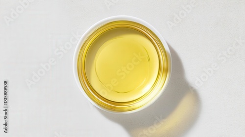 Golden vegetable oil isolated on white background top view. Generative AI