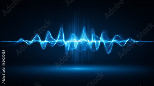 Brilliant blue light pulse dynamically oscillates across a dark background suggesting energy transmission
