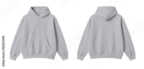 Light Gray Hoodie Mockup Front and Back Views Isolated on Transparent Background