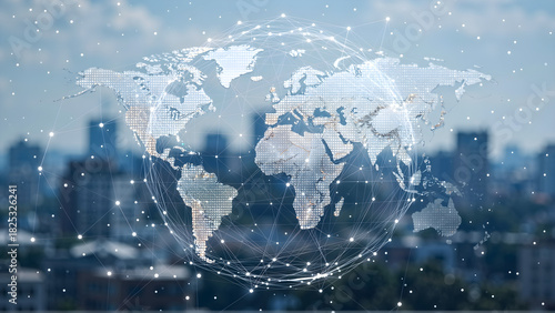 Globalna sieć danych i połączeń na tle miasta