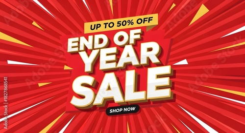 Vibrant end of year sale banner with up to 50 percent off promotion