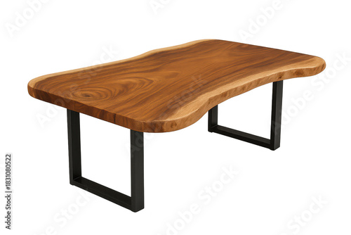 Live edge wood table, black legs, isolated on transparent background.